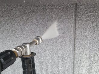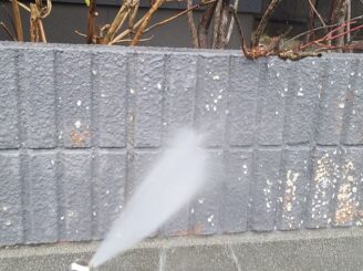 【外壁 高圧洗浄】高圧洗浄にて苔・藻・カビ等の汚れを洗い落とします。