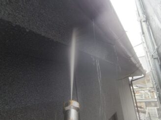 【付帯部 高圧洗浄】 高圧洗浄にて苔・藻・カビ等の汚れを洗い落とします。