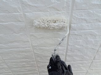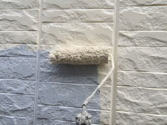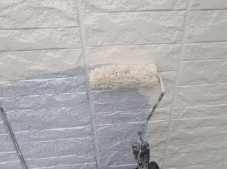 【外壁塗装 下塗り】既存の外壁材の種類や状態に適した下塗り材を塗布します。上塗り材との密着性をよくする必要不可欠な工程です。