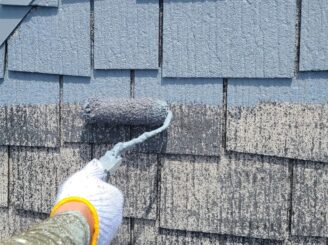 【屋根 下塗り】既存の屋根材の種類や状態に適した下塗り材を塗布します。上塗り材との密着性をよくする必要不可欠な工程です。