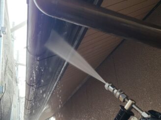 【外壁 高圧洗浄】 高圧洗浄にて苔・藻・カビ等の汚れを洗い落とします。