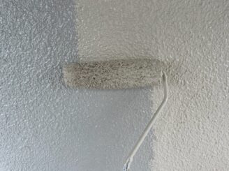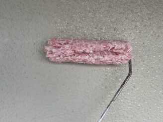 【外壁塗装 中塗り上塗り】中塗りと上塗りは同様の塗料を使用します。メーカー仕様の塗布量や塗り重ね乾燥時間を遵守し、施工していきます。