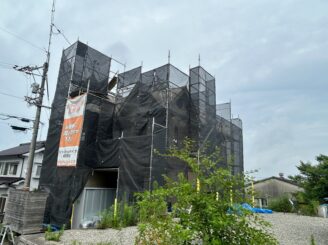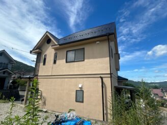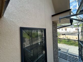 【外壁塗装 中塗り上塗り】 中塗りと上塗りは同様の塗料を使用します。メーカー仕様の塗布量や塗り重ね乾燥時間を遵守し、施工していきます。
