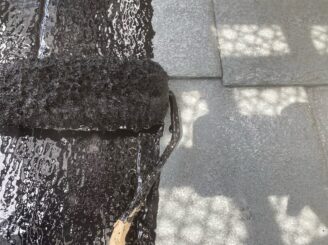 【屋根 下塗り】 既存の外壁材の種類や状態に適した下塗り材を塗布します。上塗り材との密着性をよくする必要不可欠な工程です。