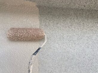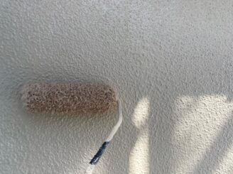 【外壁塗装 下塗り】既存の外壁材の種類や状態に適した下塗り材を塗布します。上塗り材との密着性をよくする必要不可欠な工程です。