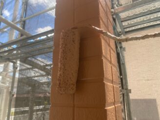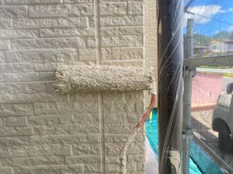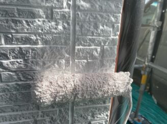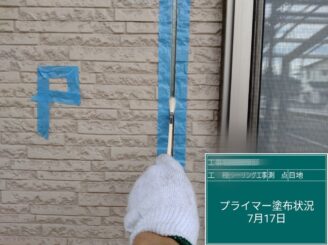 【外壁塗装 下塗り】既存の外壁材の種類や状態に適した下塗り材を塗布します。上塗り材との密着性をよくする必要不可欠な工程です。