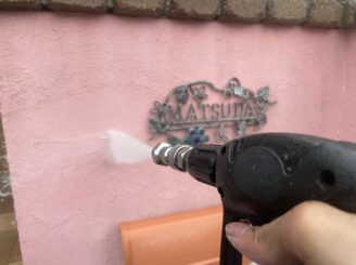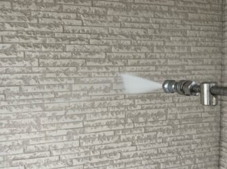 【外壁 高圧洗浄】 高圧洗浄にて苔・藻・カビ等の汚れを洗い落とします。
